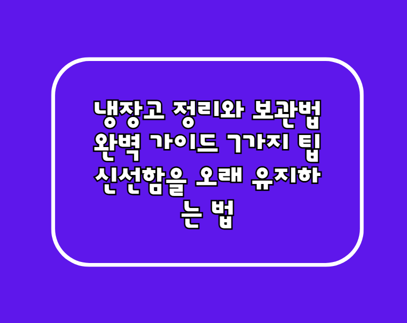 냉장고 정리와 보관법 완벽 가이드 7가지 팁으로 신선함을 오래 유지하는 법