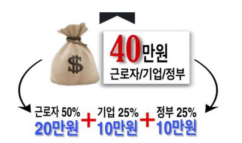 → 근로자가 20만 원을 적립하면, 정부와 기업이 20만 원 추가 지원!