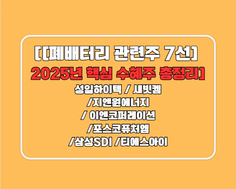 그래서 오늘은 2025년 핵심 산업 중 하나로 급부상 중인 ‘폐배터리 관련주’를 집중 분석해볼게요.