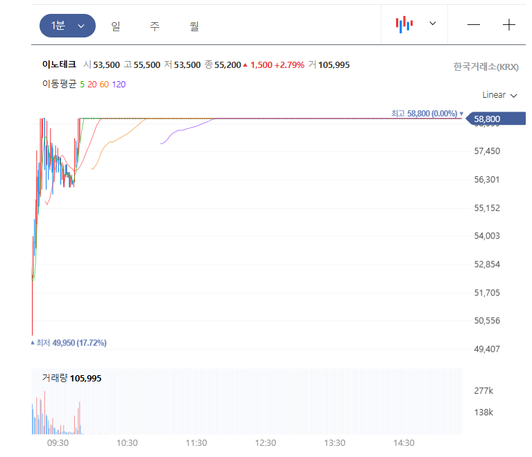 2025년 11월 7일(금요일), 디스플레이·반도체·2차전지 등으로 쓰이는 ‘복합 신뢰성 환경시험 장비’를 전문으로 제작하는 기업 이노테크가 코스닥 시장에 상장했습니다. 공모가 14,700원을 기반으로 상장 첫날 수요가 몰리며 시초가는 약 50,300원, 장중에는 58,800원까지 치솟아 공모가 대비 +300%를 기록한 화려한 출발을 보였습니다.
