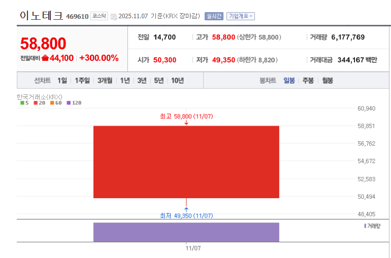 이노테크(469610) 상장일 +300% 달성! 그다음, 성장이냐 리스크냐?