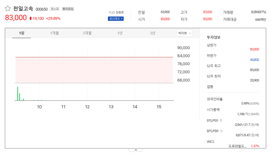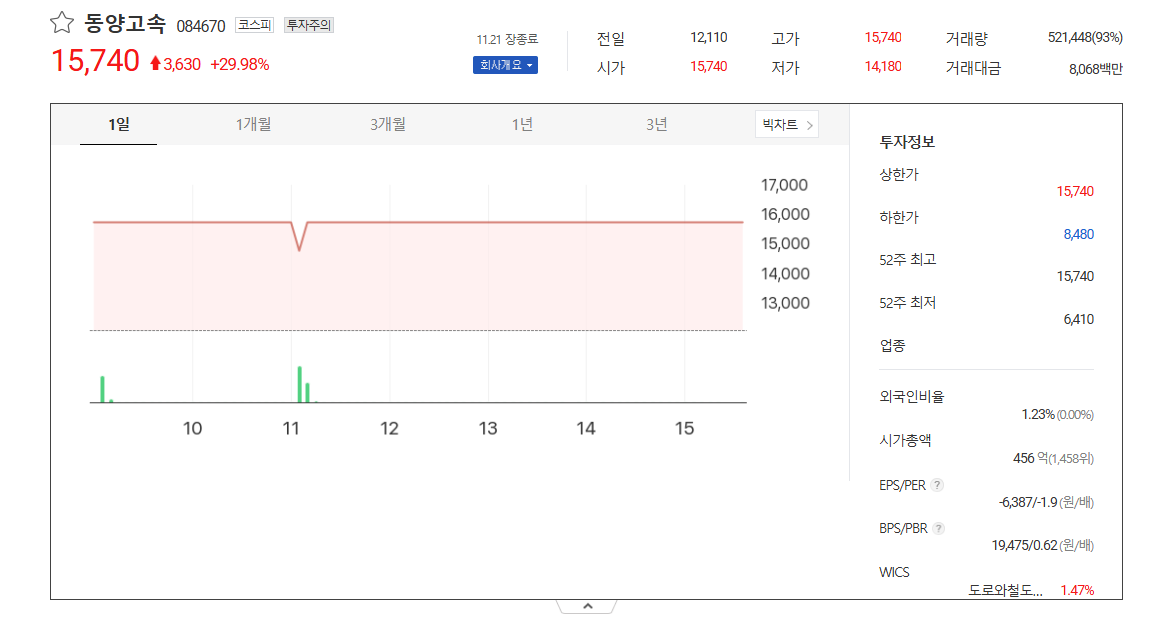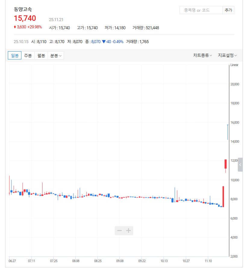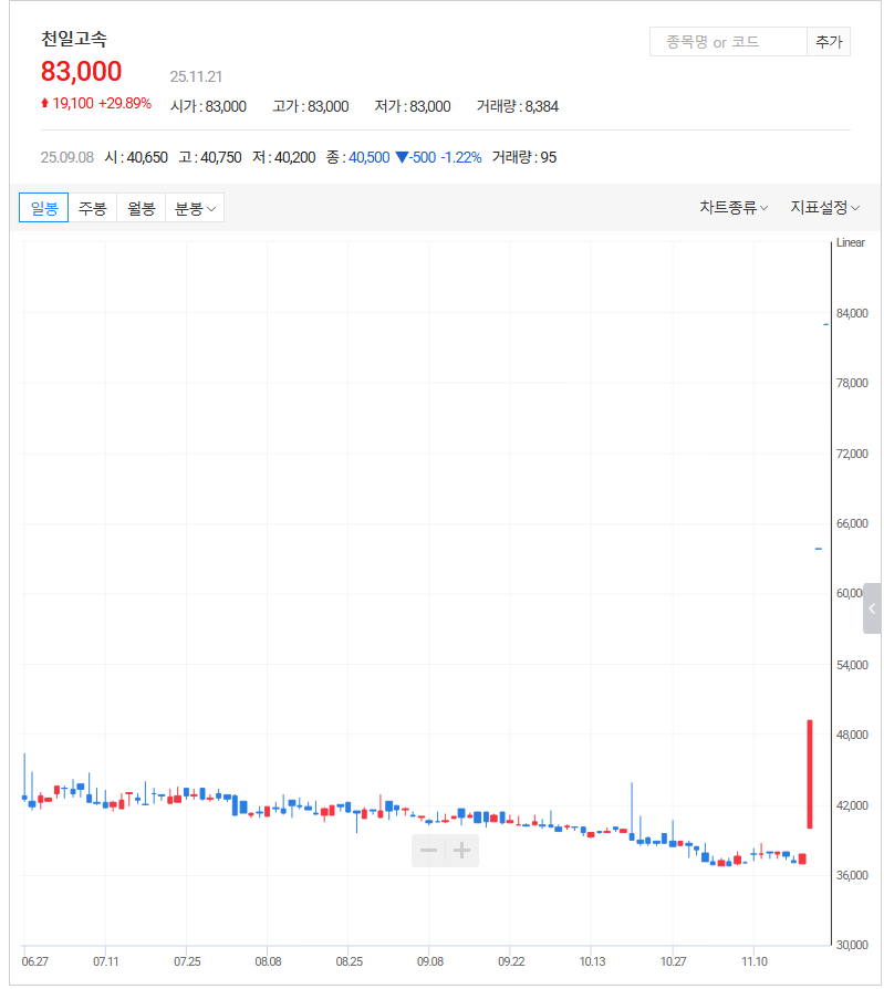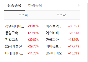 ⭐ 2. 동양고속 / 천일고속 (각 +29~30%)