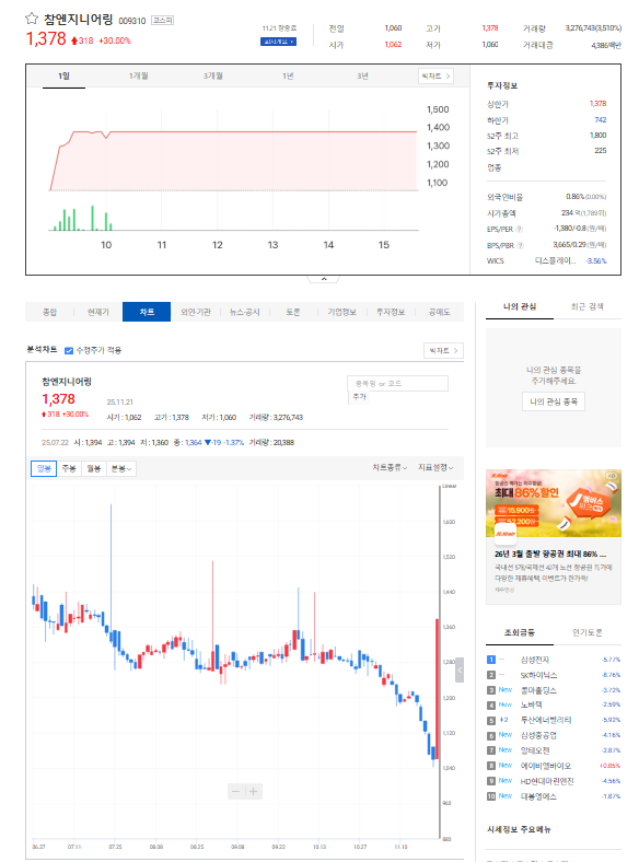 ⭐ 1. 참엔지니어링 (상한가 +30%)
