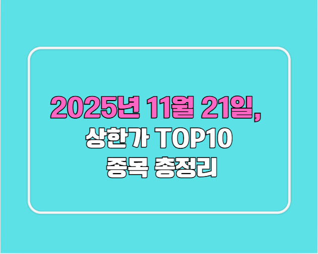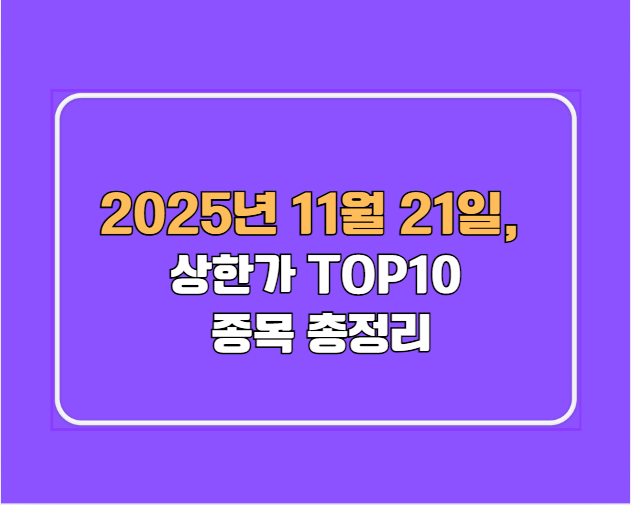 📌 2025년 11월 21일, 상한가 TOP10 종목 총정리