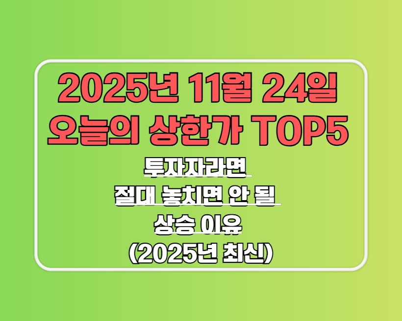 📈 오늘의 상한가 5종목 총정리! 투자자라면 절대 놓치면 안 될 상승 이유 (2025년 최신)