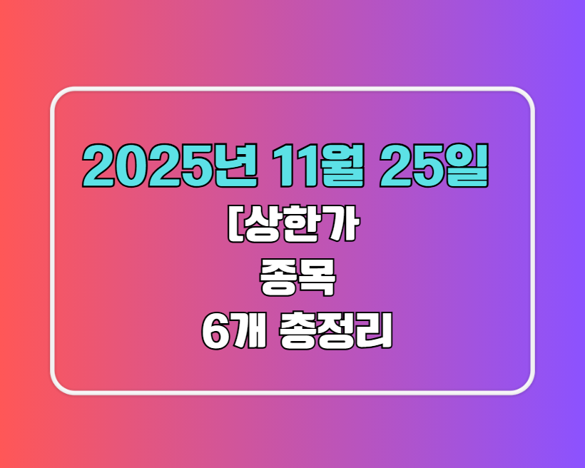 2025년 11월 25일 ::[상한가 종목 6개 총정리 📈 오늘의 급등주, 왜 올랐을까?]