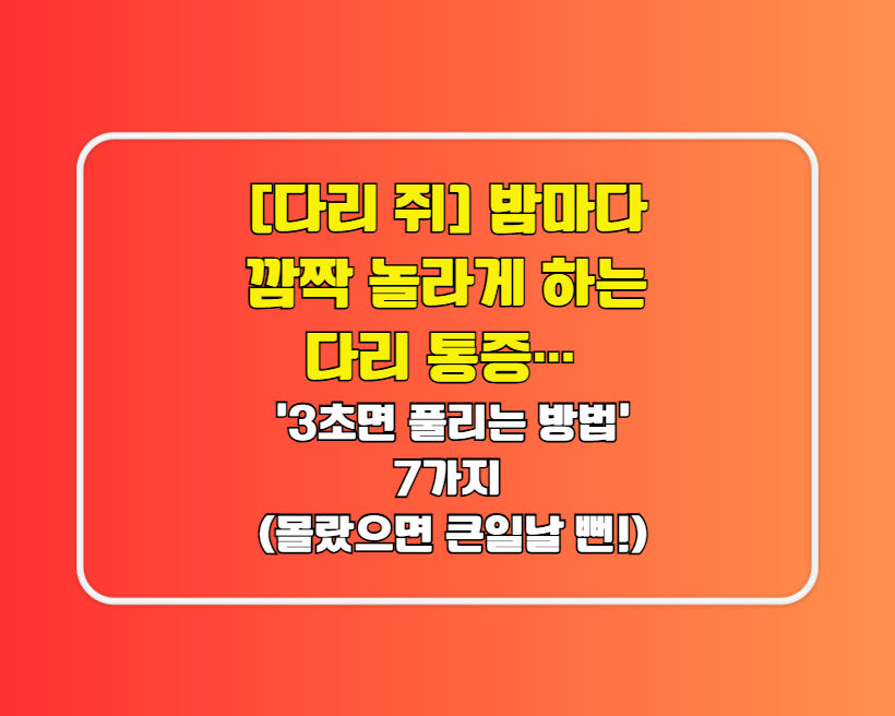 🔥 [다리 쥐] 밤마다 깜짝 놀라게 하는 다리 통증… ‘3초면 풀리는 방법’ 7가지 (몰랐으면 큰일날 뻔!)