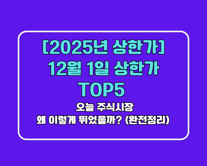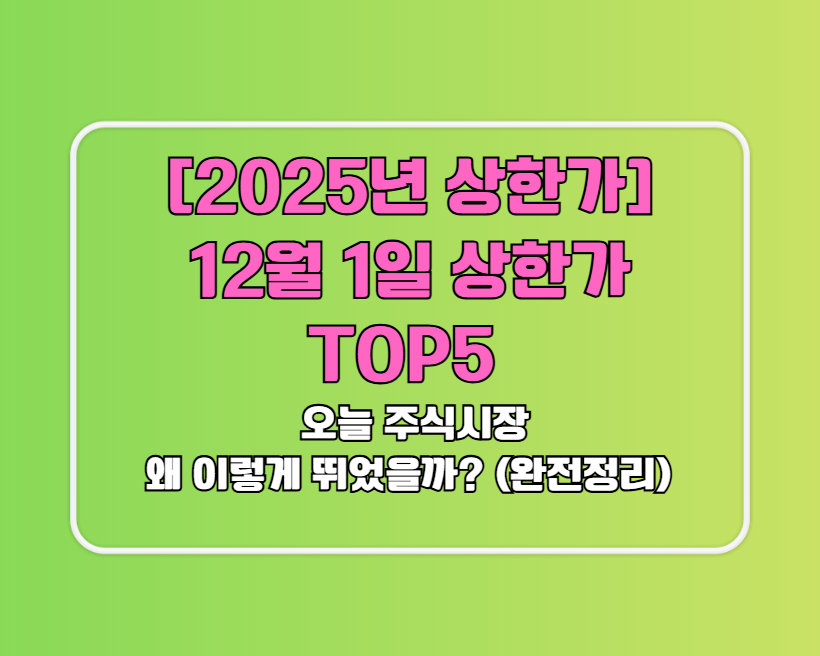 🔥 [2025년 상한가] 12월 1일 상한가 TOP5, 오늘 주식시장 왜 이렇게 뛰었을까? (완전정리)