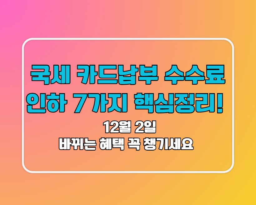 🔥국세 카드납부 수수료 인하 7가지 핵심정리! 12월 2일 바뀌는 혜택 꼭 챙기세요🔥
