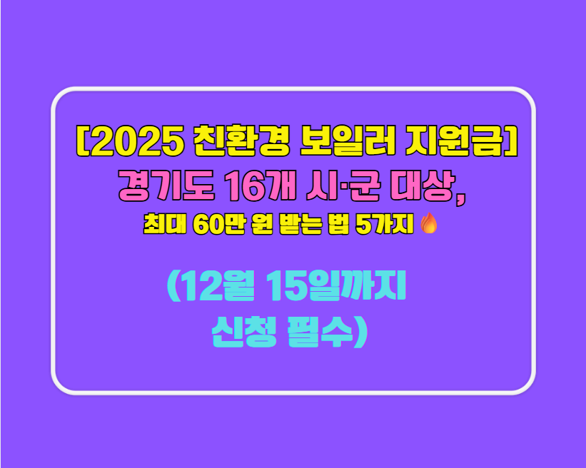 [2025 친환경 보일러 지원금] 경기도 16개 시·군 대상, 최대 60만 원 받는 법 5가지🔥 (12월 15일까지 신청 필수)