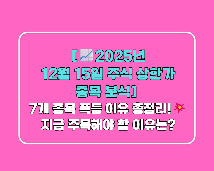 [📈2025년 12월 15일 주식 상한가 종목 분석] 7개 종목 폭등 이유 총정리!💥 지금 주목해야 할 이유는?