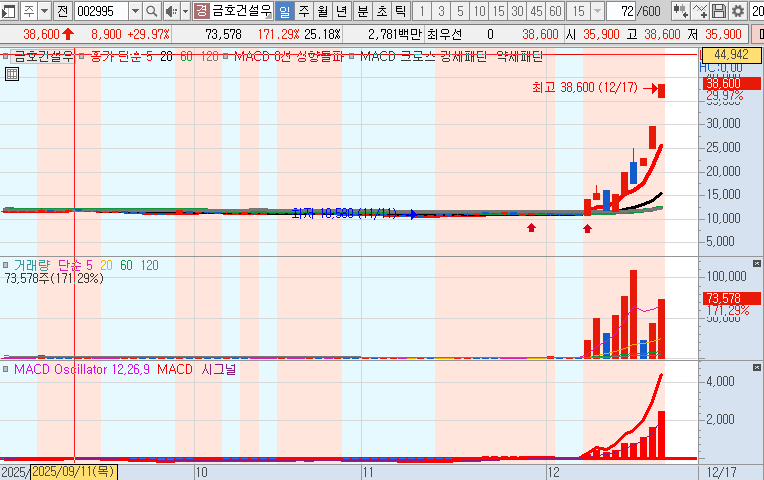 | 금호건설우 | 38,600 | +29.97% | 73,578 | 3 |