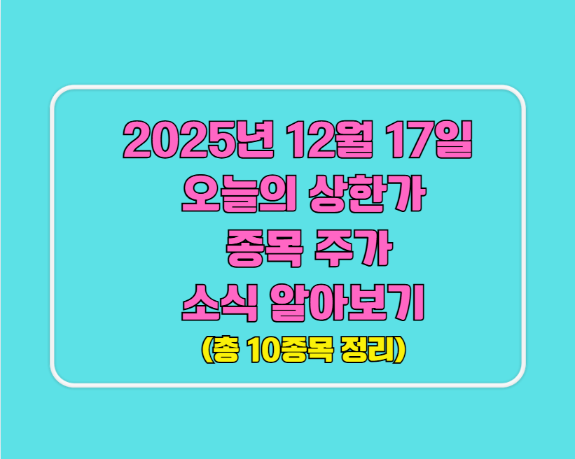 2025년 12월 17일 오늘의 상한가 종목 주가 소식 알아보기|기업개요·상승이유 총정리