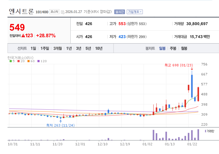 - 엔시트론 549 ▲ 123 +28.87%