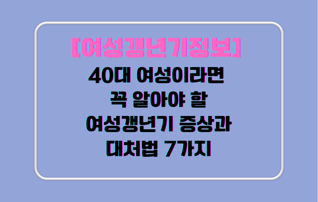 [여성갱년기정보] 40대 여성이라면 꼭 알아야 할 여성갱년기 증상과 대처법 7가지