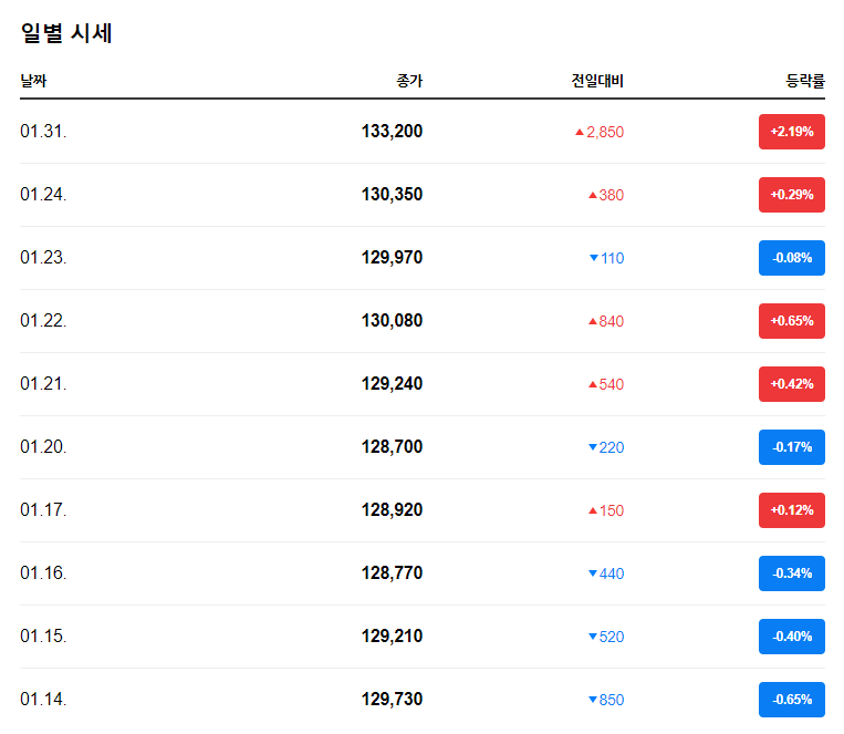지난 2025년 1월 31일 훌쩍 올랐습니다.^^ 무섭네요.